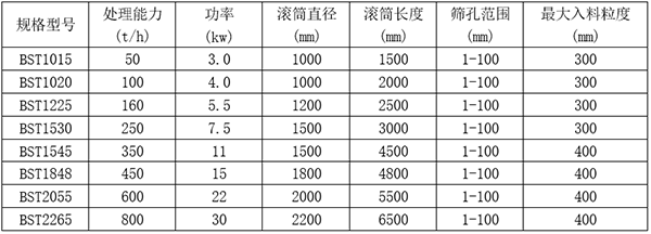 滚筒筛主要由机架、传动装置、筛筒、筛网等部分组成。滚筒沿轴心转动,利用角度使物料在筛筒内透筛和向前运动,物料在筒内被带到一定高度后翻落,从而提高筛分效率,同时大料翻落后滞留在上半区筛网面上的颗粒掉落,可很好防止堵塞。